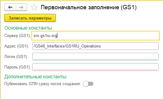 Эти параметры заполняются в карточке номенклатуры во вкладке GS1